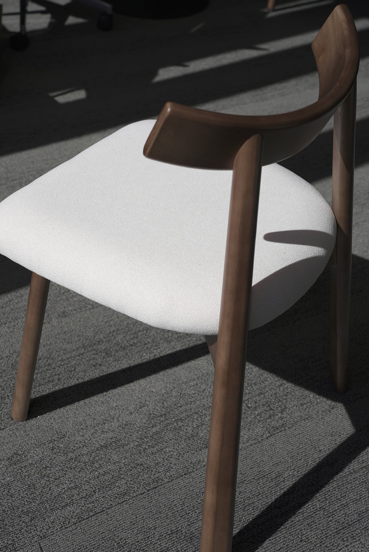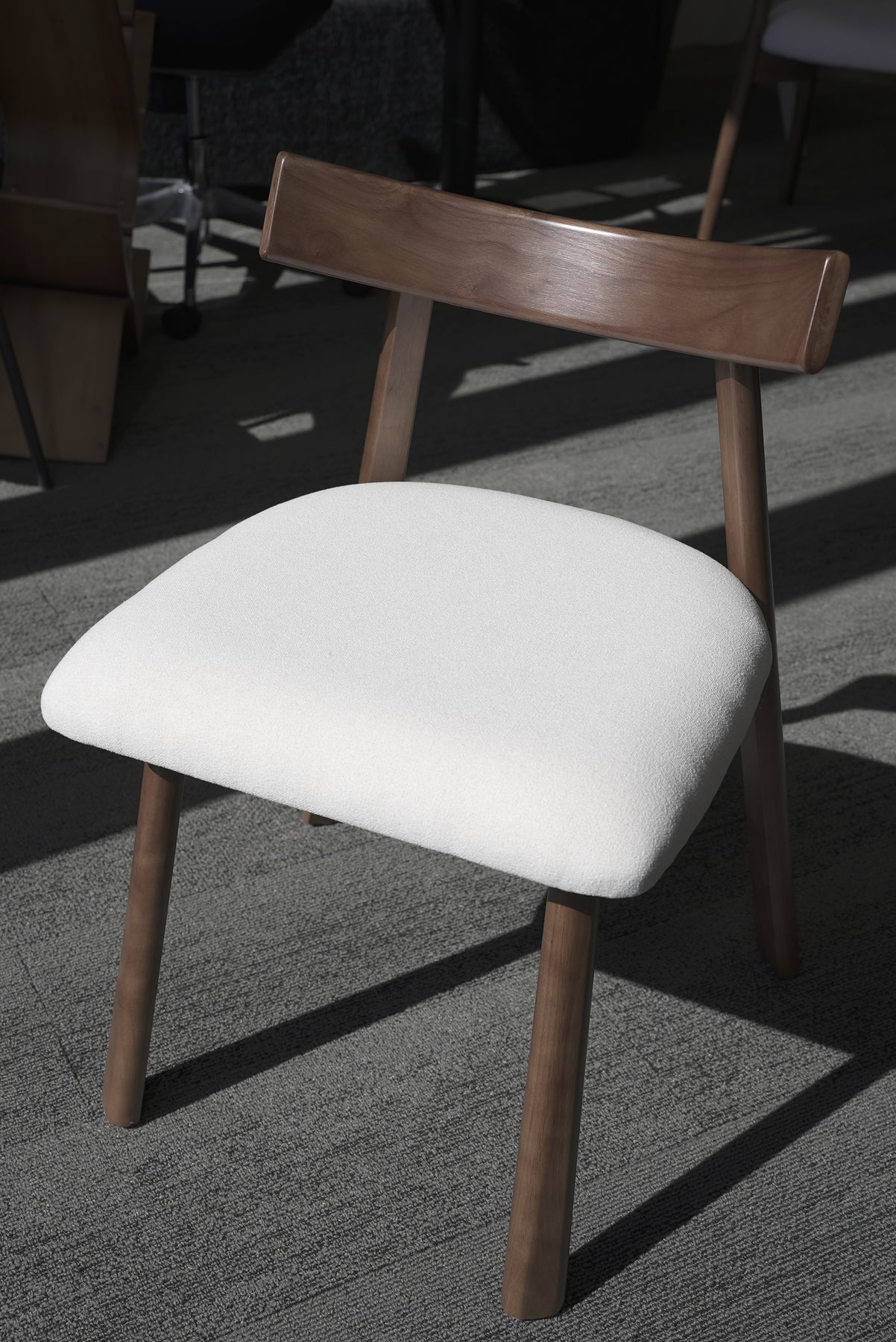 The rich wood grain adds natural warmth, while the creamy upholstered seat elevates the overall look with a touch of luxury. Perfect for contemporary dining spaces, studios, or offices, this chair embodies understated elegance — where simplicity meets refined style.