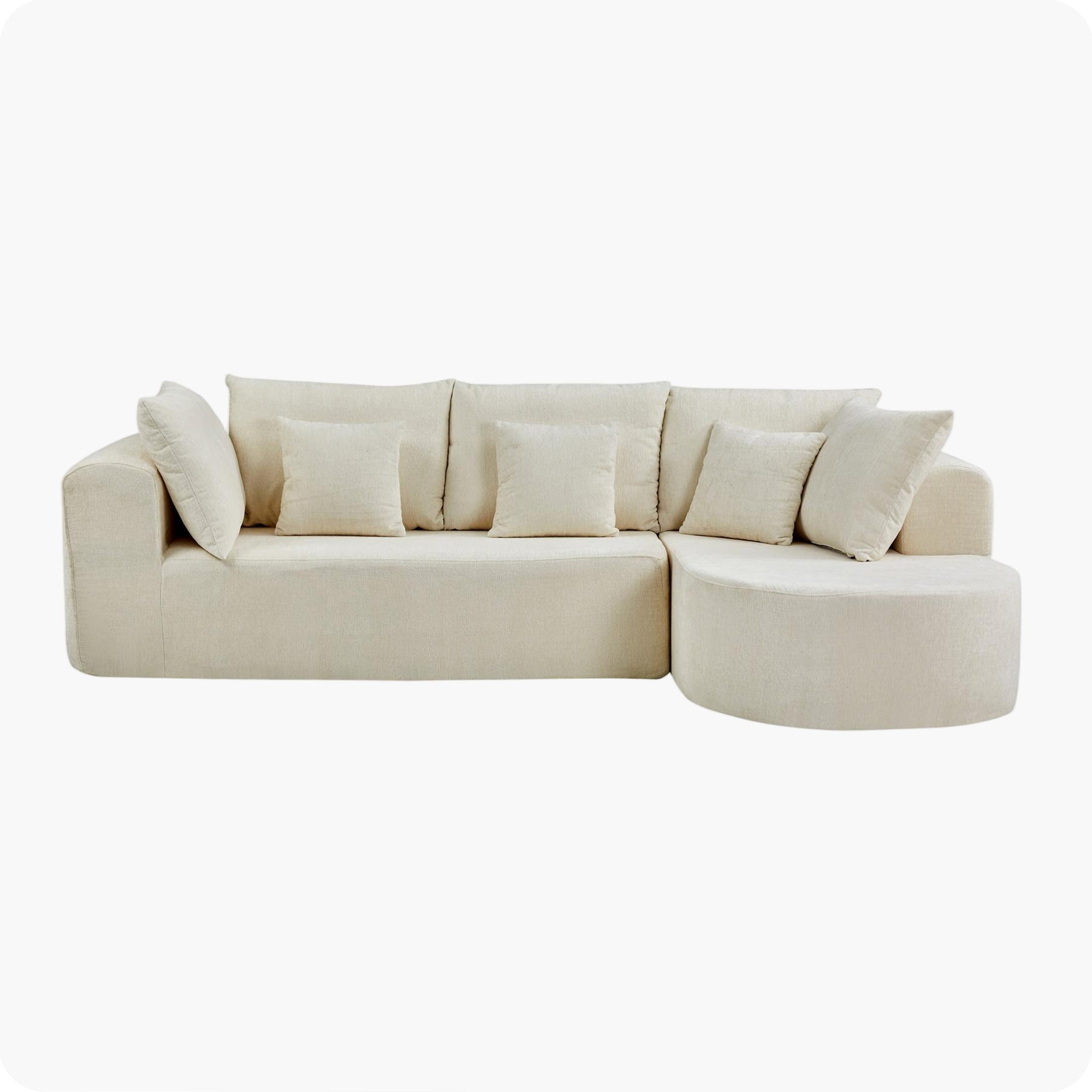 Upgrade your home with the DeskOne Luna, a modern L-shaped sofa designed with smooth curves and a soft silhouette. Combining elegance with comfort, this piece creates a warm and inviting atmosphere, perfect for contemporary living spaces.