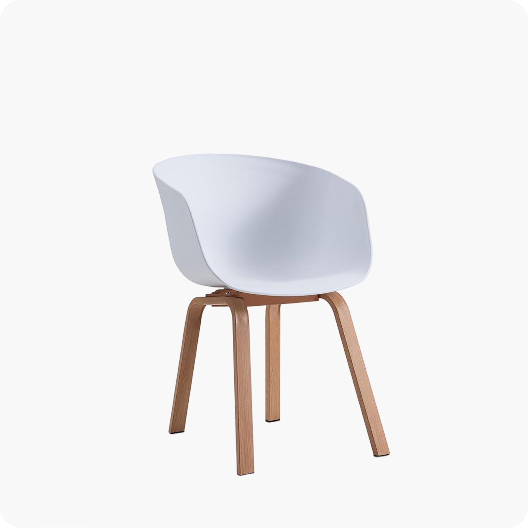 The Desk One LoopShell features a smooth, wrap-around shell seat with a clean, modern shape. Supported by sturdy wooden legs, it’s a perfect match for dining spaces, casual offices, or lounge setups.