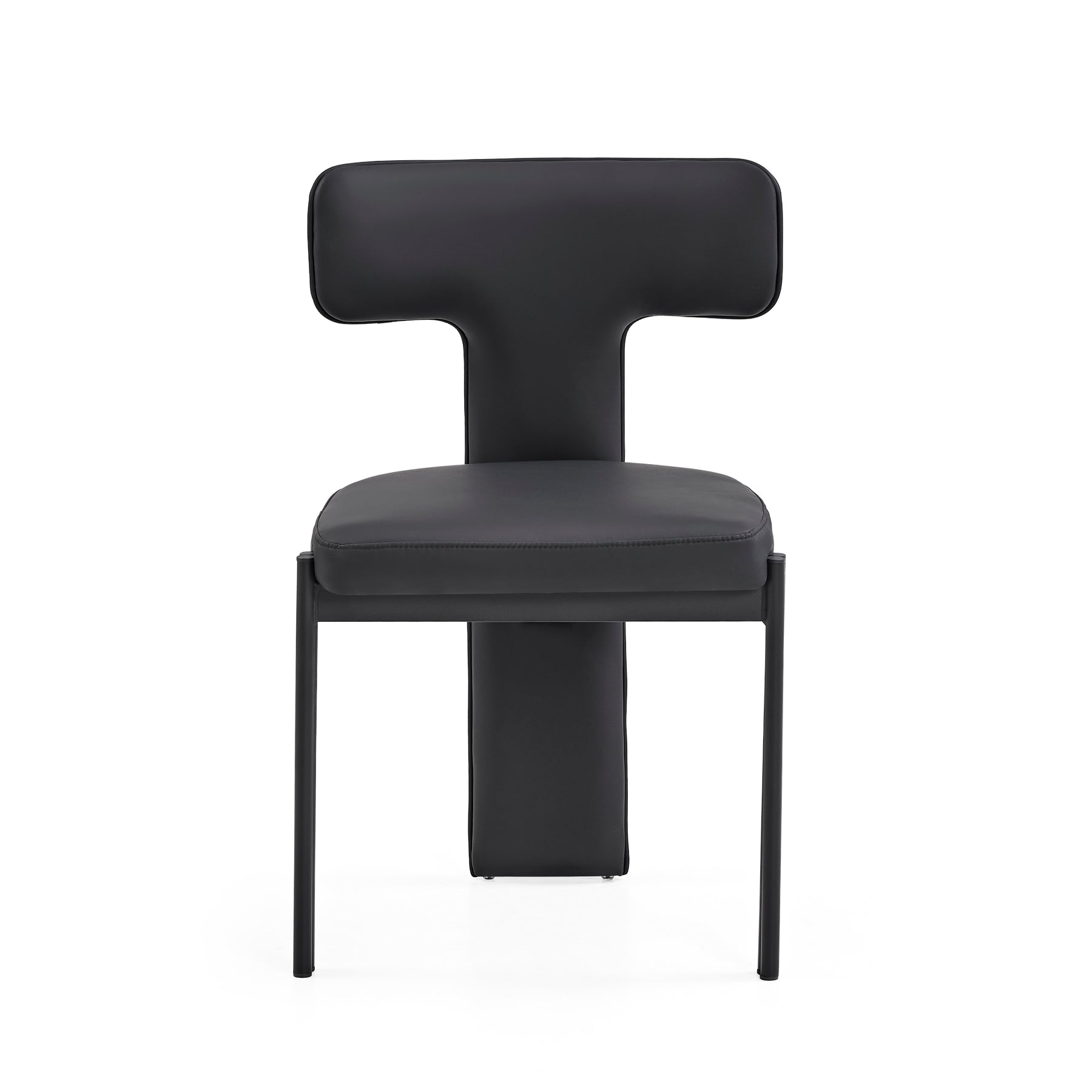 Inspired by structural architecture, the T-Form Chair stands out with its iconic T-shaped backrest — bold, modern, and expressive. The curved wooden frame is wrapped in PU leather for both comfort and visual presence, while the slim metal legs provide stability without visual weight.