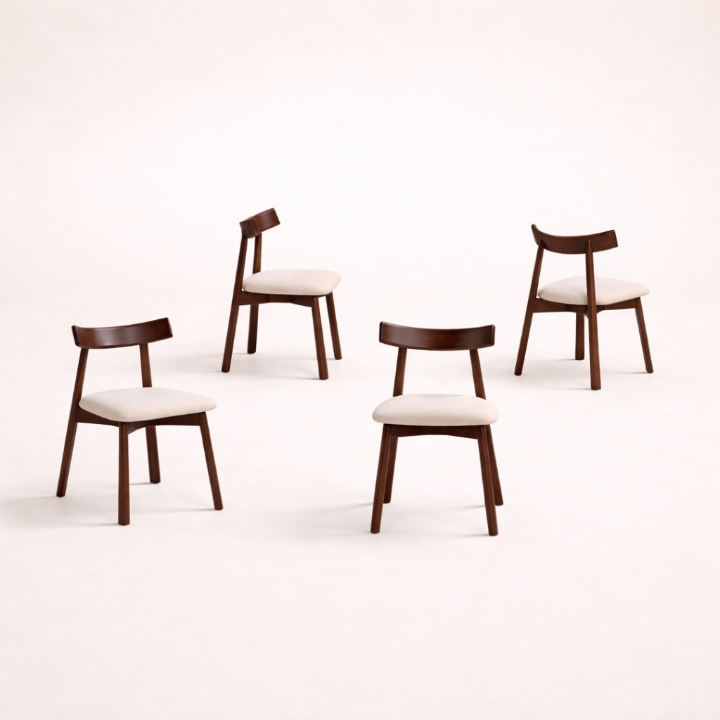 The rich wood grain adds natural warmth, while the creamy upholstered seat elevates the overall look with a touch of luxury. Perfect for contemporary dining spaces, studios, or offices, this chair embodies understated elegance — where simplicity meets refined style.